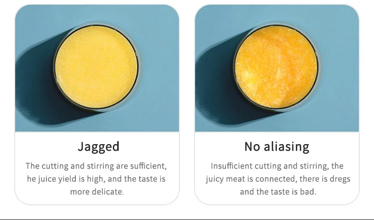 Зубчатый нож. Он имеет несколько режущих кромок с острыми лезвиями. Он сочетается со скоростью вращения 21000 раз/мин. Sirring thor-ough, сок чистый и аккуратный, даже кубики льда могут быть легко сломаны, и вход нежный и шелковистый.