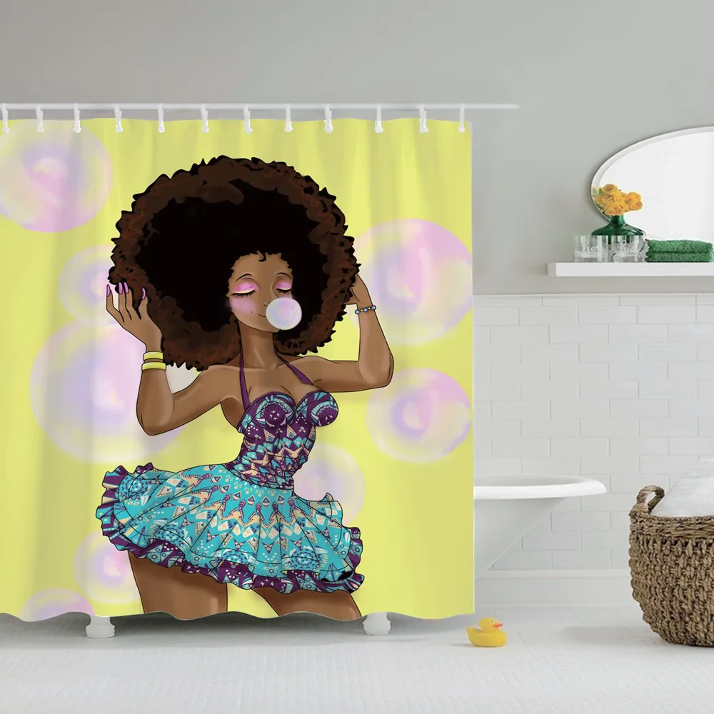 Dafield черная Девичья Волшебная занавеска для душа, женские африканские волосы с разным стилем для ванной, дизайнерская занавеска для душа в африканском стиле