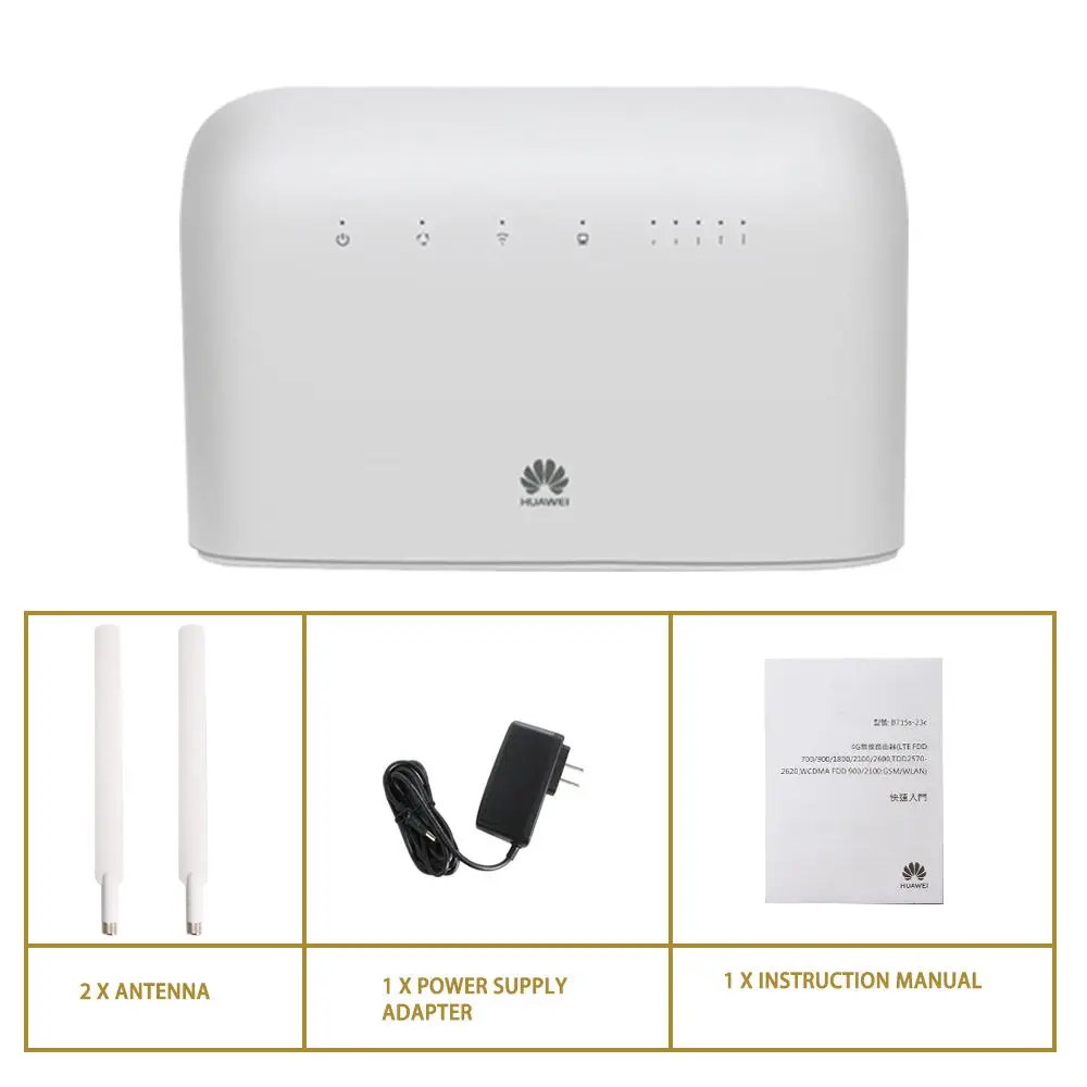 Huawei B715-это новый WiFi роутер 4G LTE категории 9, который может поддерживать до 64 беспроводных устройств одновременно. Это может достичь максимальной скорости загрузки до 450 Мбит/с и скорости загрузки до 50 Мбит/с. Он имеет встроенный порт Ethernet, вы можете подключить внешний жесткий диск или принтер через порт USB и две внешние антенны. В настоящее время существует B715s-23c Huawei, доступный для сетевых поставщиков «Play» в Польше и «LMT» в Латвии.