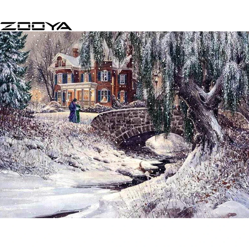 ZOOYA 5D DIY алмазная живопись наборы для вышивки крестом Алмазная вышивка снежный мост пара страз картина мозаика картины R1224
