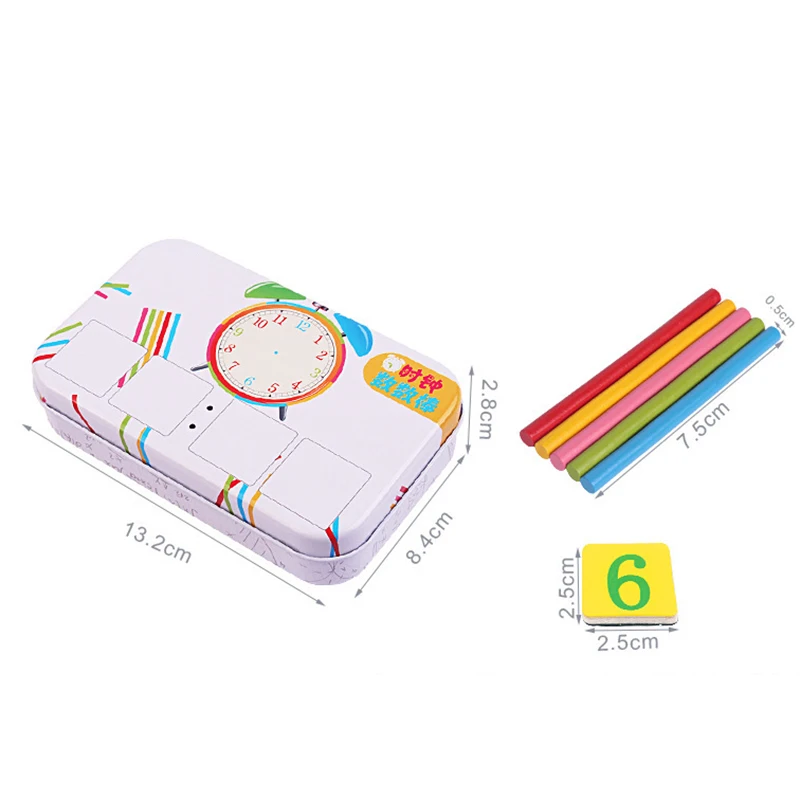 * Дети могут узнать о математических часах, вы можете поместить указатели на любое положение часов, а затем позволить детям разместить правильные магнитные карточки с цифрами на пустой квадратной раме железной коробки.