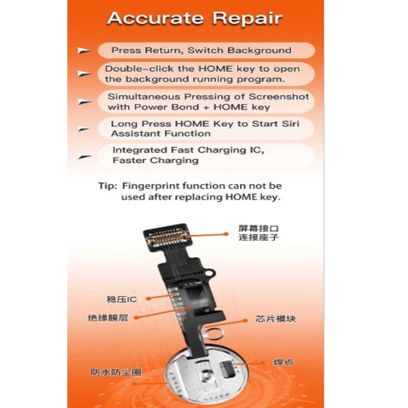 Пожалуйста, обратите внимание: Универсальная кнопка может использоваться для возврата функции bcak, но без функции touch id. Пожалуйста, обратите внимание на это, спасибо!