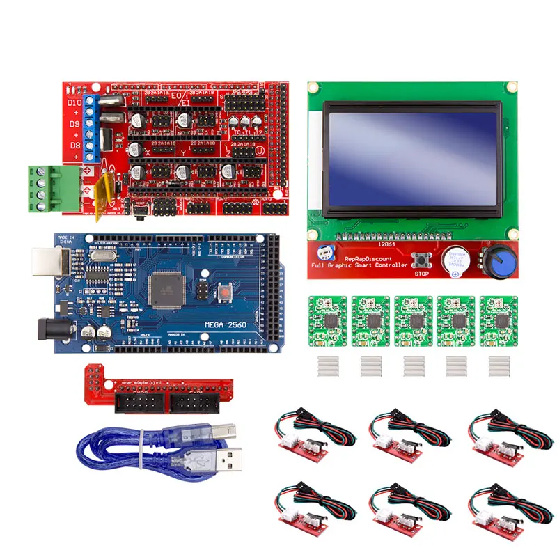 Новый 3D Принтер Комплект для RAMPS 1,4 контроллер + Mega 2560 R3 + LCD 12864 + 6 концевых выключателей + 5 A4988 шаговый драйвер