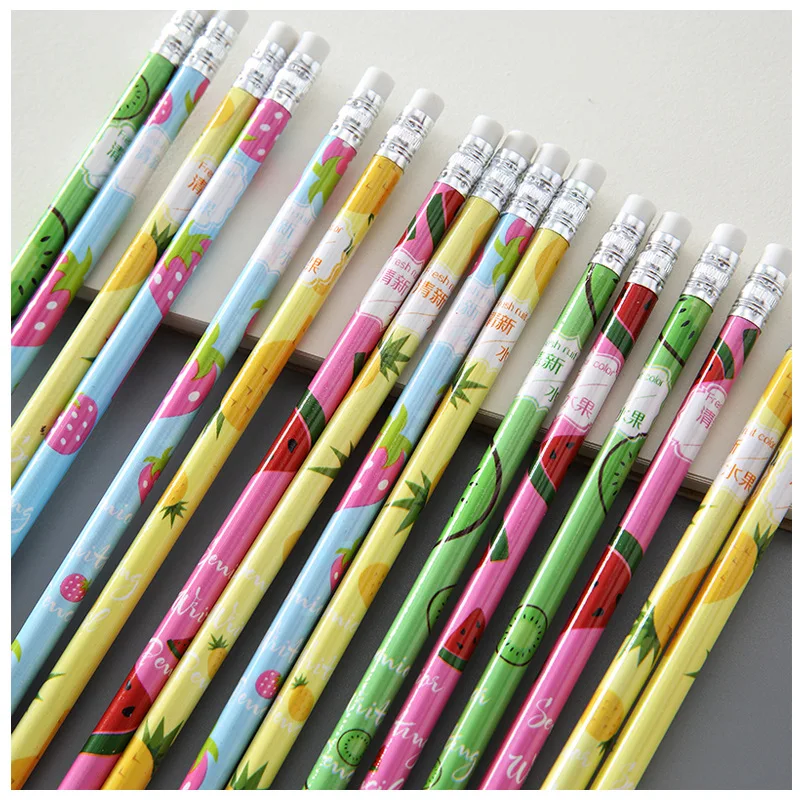 Карандаши HB стандартные с рисунком клубники и киви, школьные принадлежности, высокое качество, 12 шт., фрукт арбуз ананас