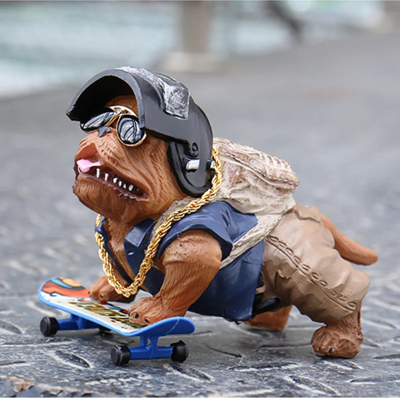 Материал: смола Цвет: синий, желтый, оранжевый Размер (прибл.): 14,5 см x 7 см x 6,5 см/5,7*2,75*2,55 дюйма Посылка включает в себя: 1 * собака орнамент 1 * Золотая цепочка 1 * скейтборд