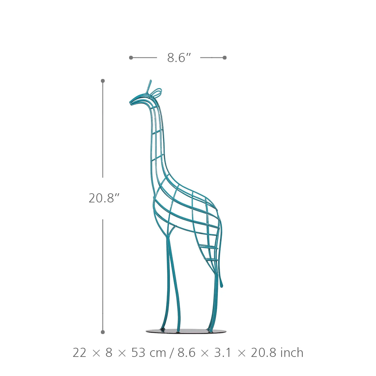 С поднятыми ногами и поднятой головой Жираф выглядит красиво. Элемент железного стержня проходит через всю форму, которая является модной и полна дизайнерских ощущений. Синяя краска для выпечки защищает ее от ржавчины, и она полна визуального воздействия.