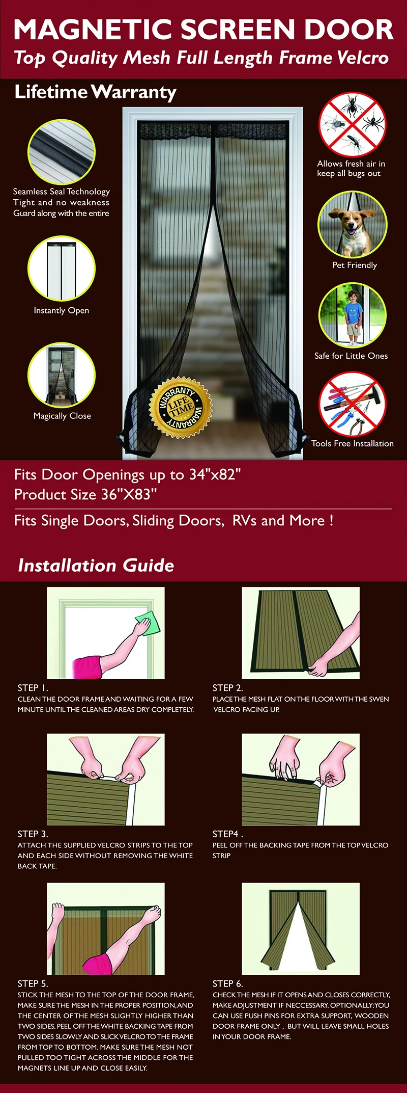 С магнитами, легко открывается и автоматически закрывается. Держите ваш дом полон свежего воздуха без раздражающих ошибок внутри. Простая и быстрая установка. Подходит для одной двери, раздвижной двери и т. д.