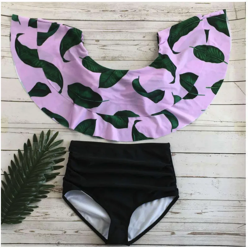 Женский купальник с открытыми плечами, бикини с принтом и оборками, Раздельный купальник с высокой талией, сексуальный купальный костюм с подкладкой, 2019, XL, пляжные купальные костюмы