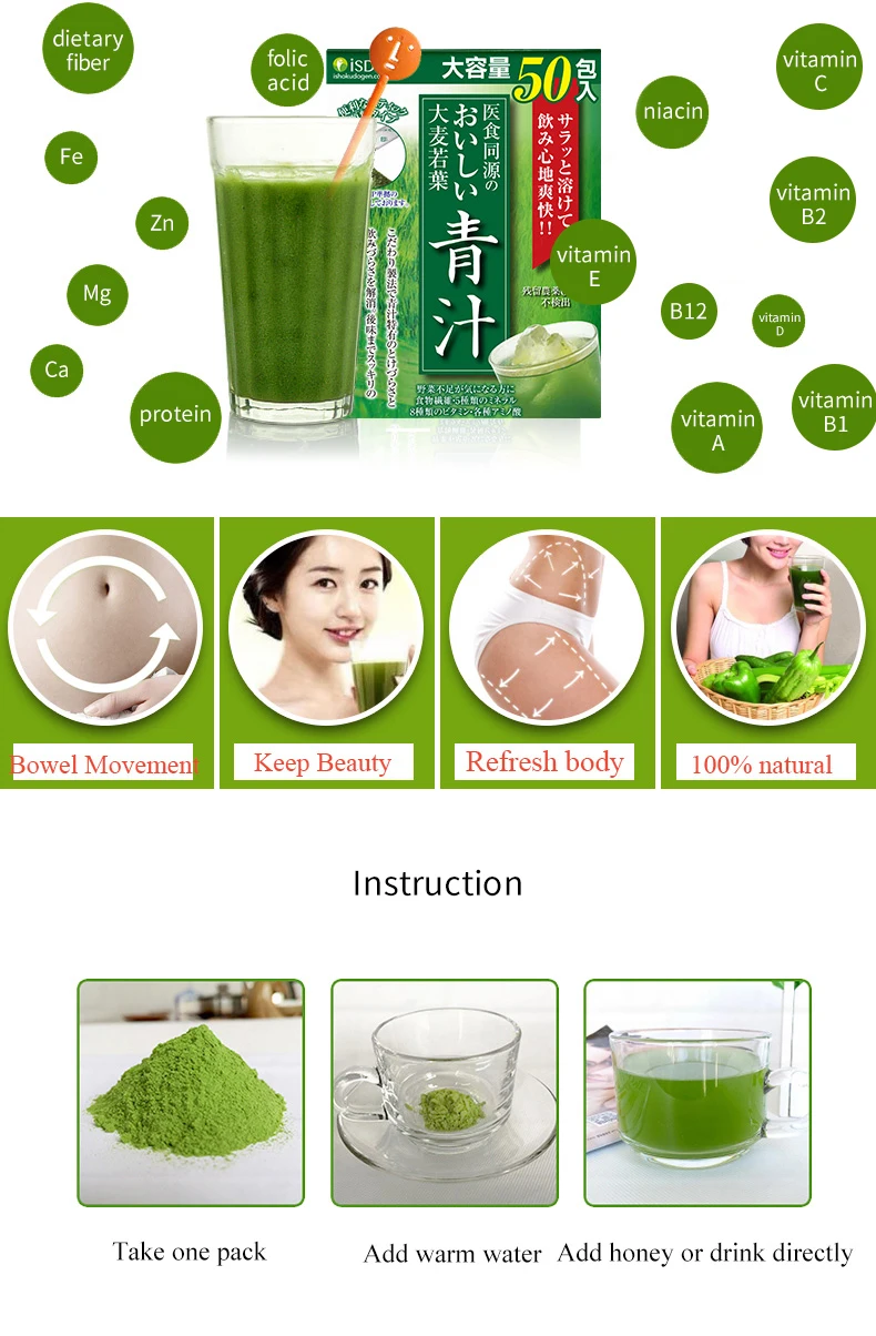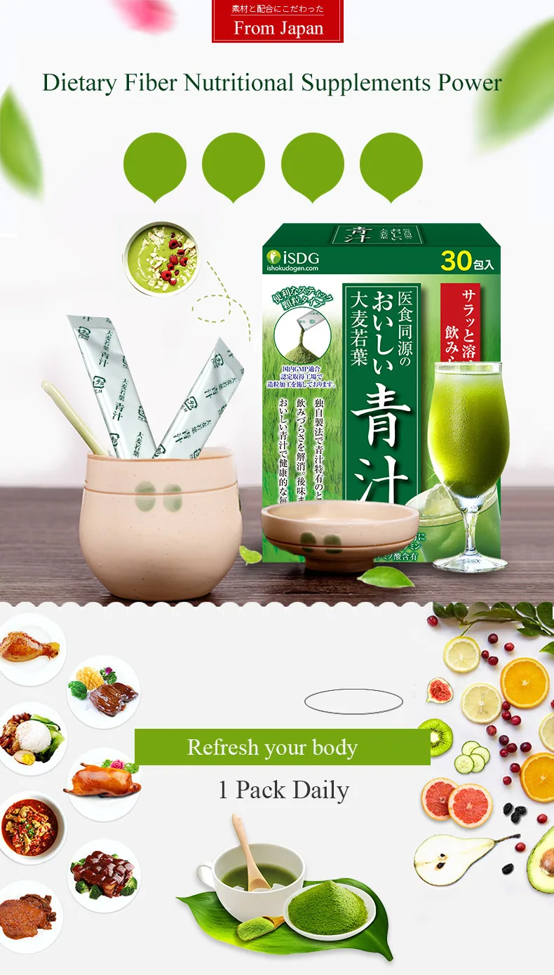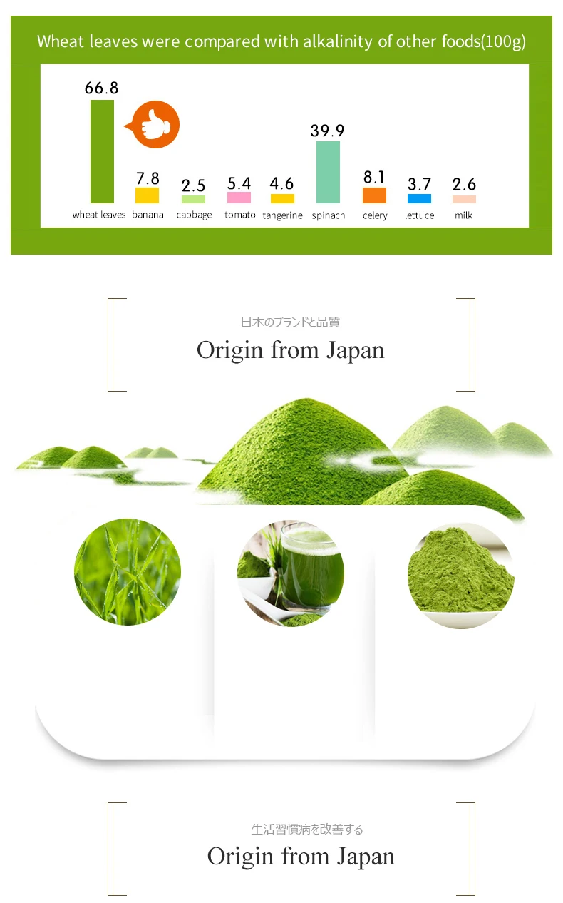 Натуральные листья ячменя, посаженные на ферме Кагосима, сделаны для обновления