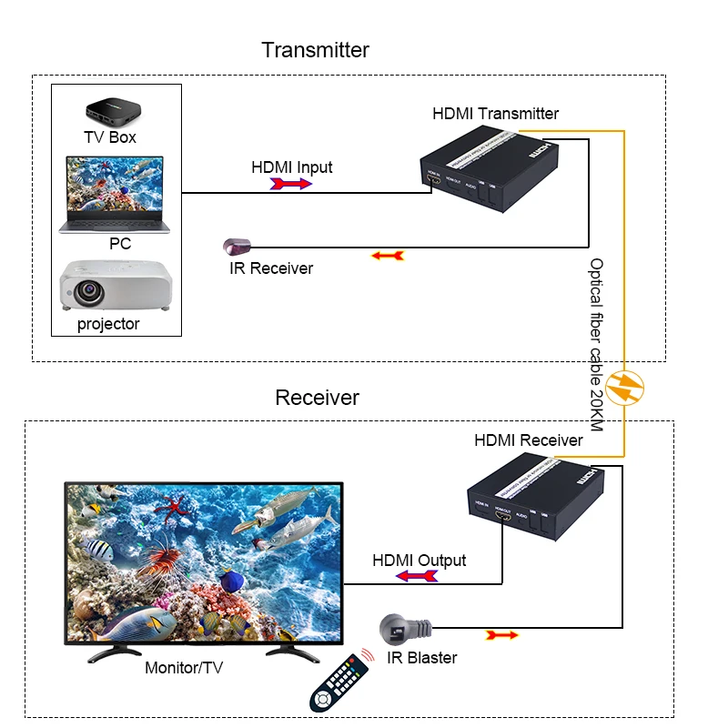 HDMI ИК-удлинитель для оптоволоконного медиа-преобразователя