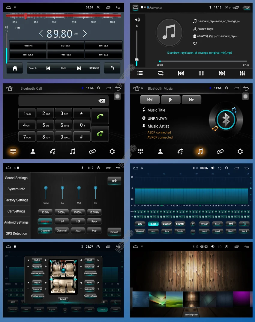 Поддержка эквалайзера 18/36 эквалайзера для музыки, видео-дисплея альбома, названия песен, имени певца, лирической информации от игрока по умолчанию.