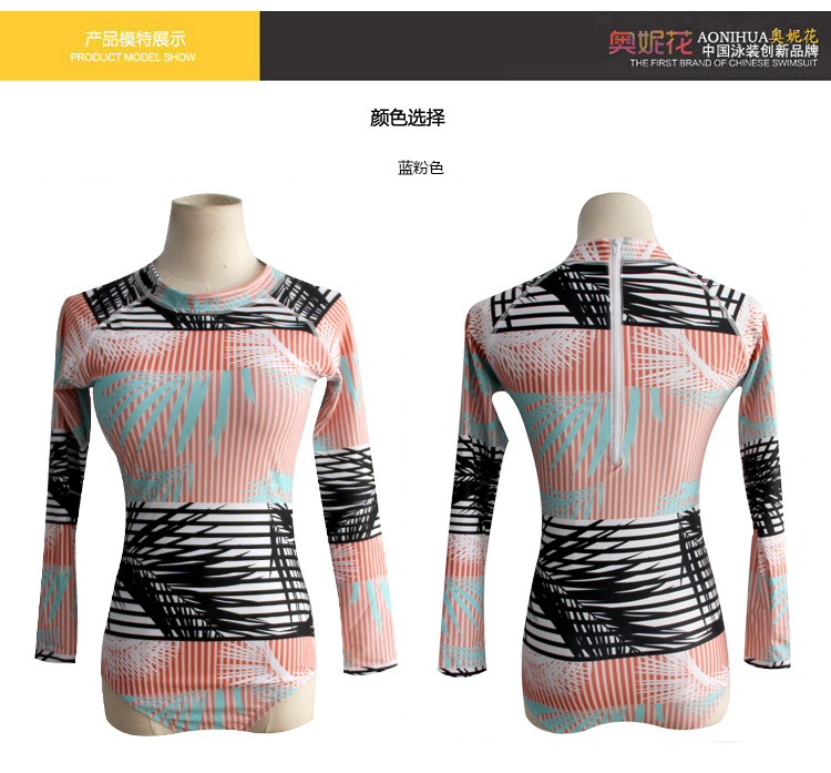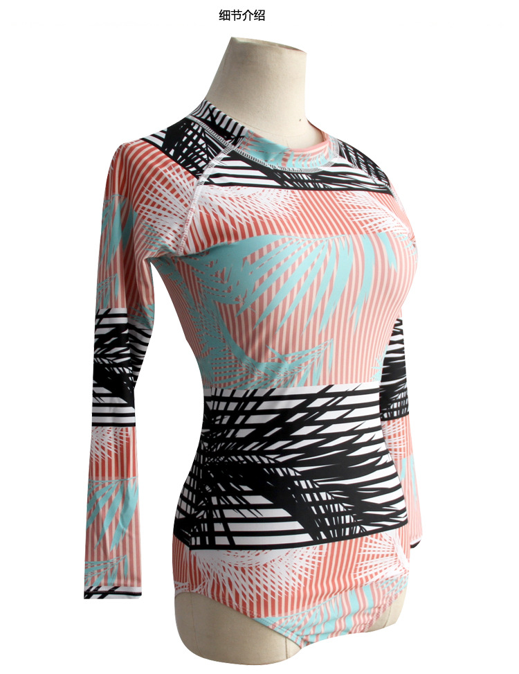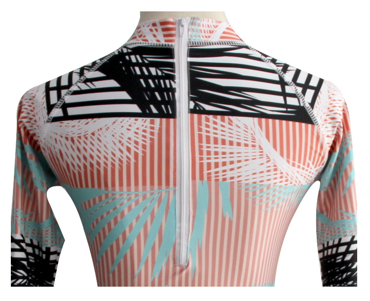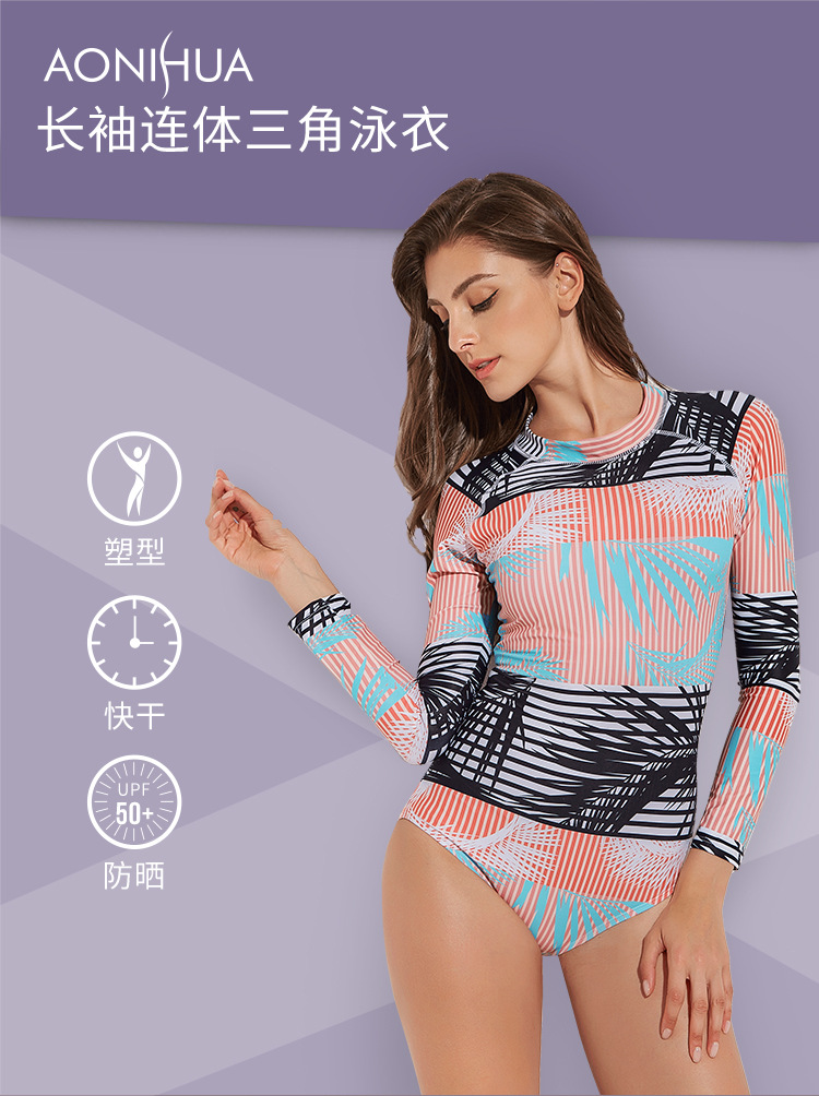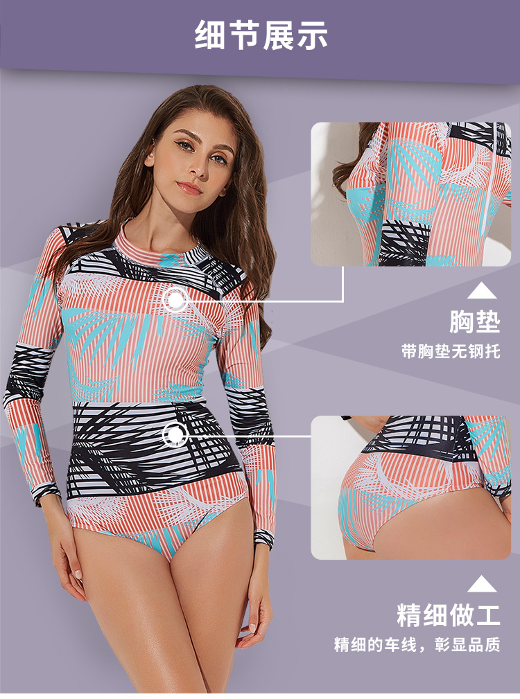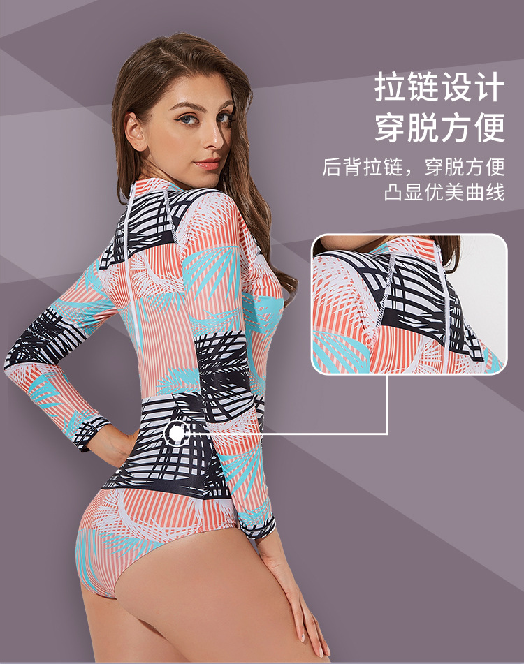Женский купальник с длинными рукавами, с геометрическим принтом, с высокой горловиной, Цельный купальник, бразильский Монокини, для дайвинга, серфинга, гидрокостюм, пляжный