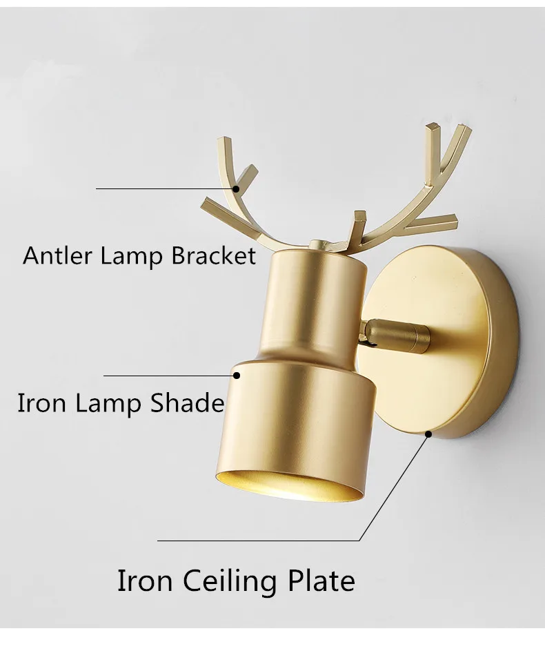 Модель: Настенный светильник из оленьего рога Цветовая температура: теплый белый Регулировка абажура: Регулируется вверх и вниз / влево и вправо Источник света: в комплекте (светодиодная лампа E27 * 1)