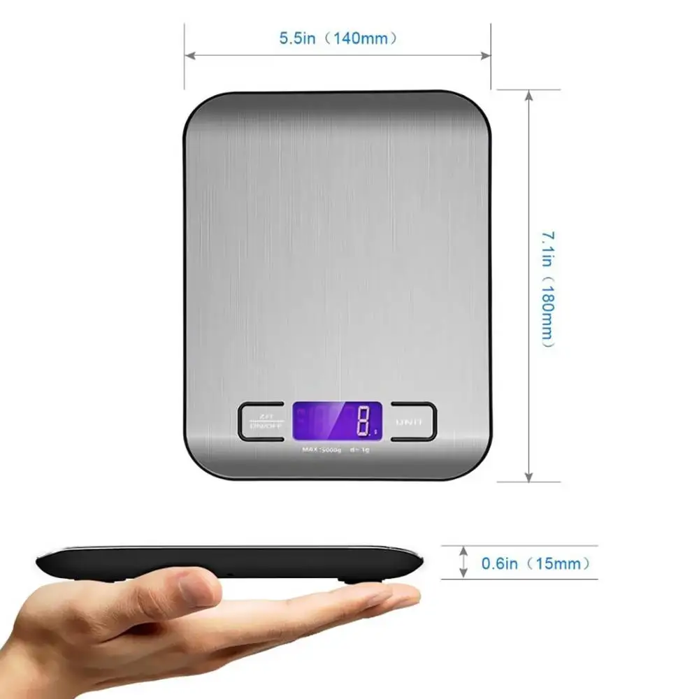 Электронные кухонные весы из нержавеющей стали 10 кг Серебристые цифровые электронные кухонные весы с ЖК-дисплеем для приготовления пищи