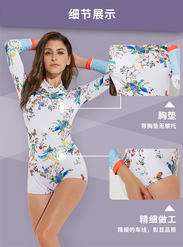 Женский винтажный купальный костюм в стиле ретро, с длинным рукавом, с геометрическим рисунком, пуш-ап, для серфинга, 2019