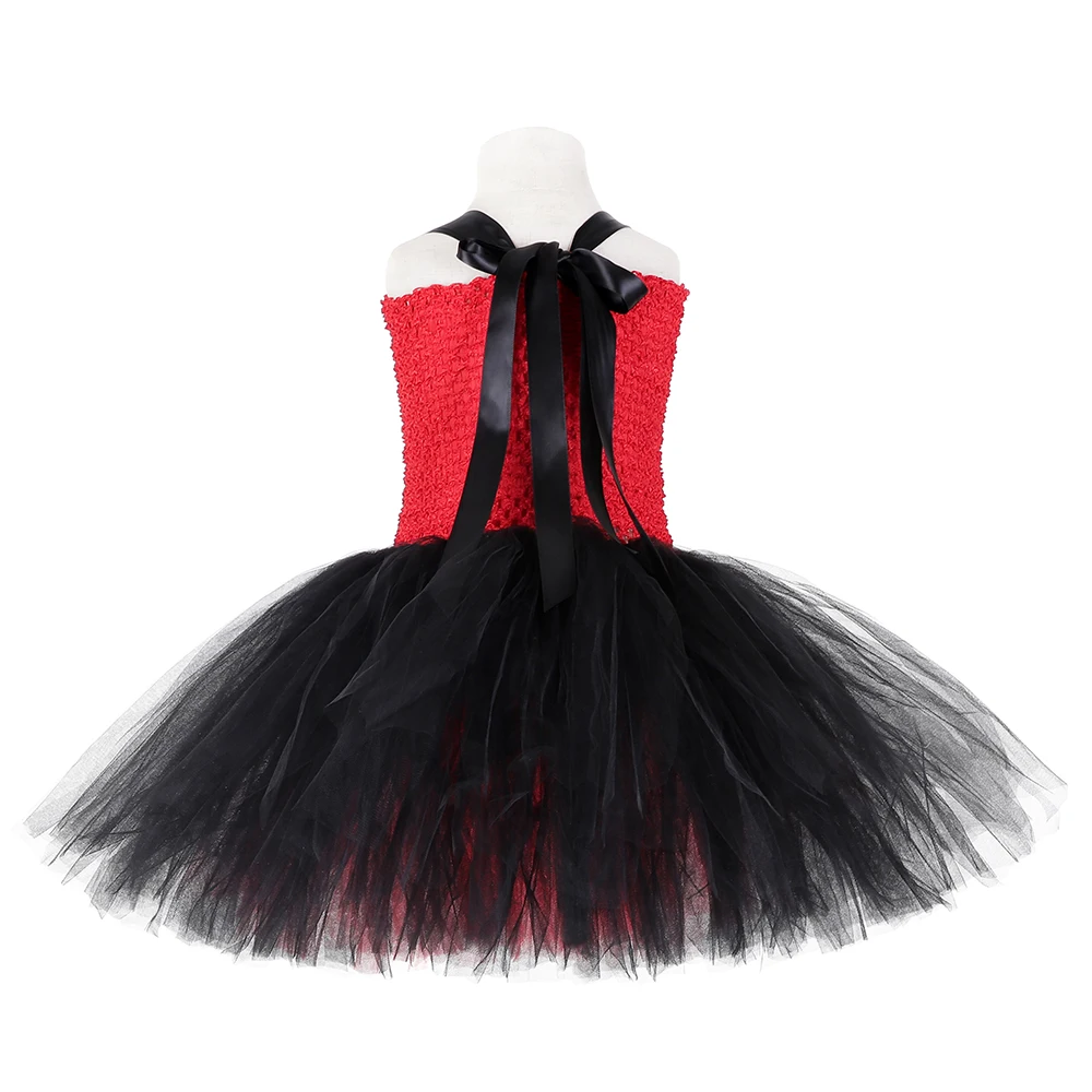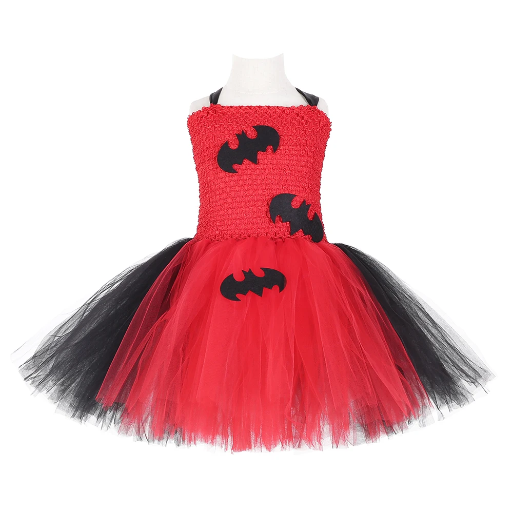 Платье-пачка «летучая мышь вампира» красные и черные Детские костюмы на Хэллоуин для девочек, карнавальные платья до колен, фатиновые платья-пачки От 1 до 14 лет