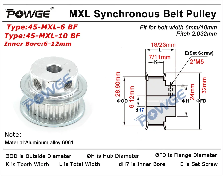 Дюймовый трапециевидный алюминиевый сплав45 зубьевШкив MXL TimimgОтверстие 6/8/10/12 мм45-MXL-6 BF 45-MXL-10 BF шаг 2,032 мм дляШирина 6 мм/10 ммСинхронный ремень MXL подходит для обычного торга, подходит для передачи крутящего момента и транспортировки светильник нагрузки 45T 45 зубьев