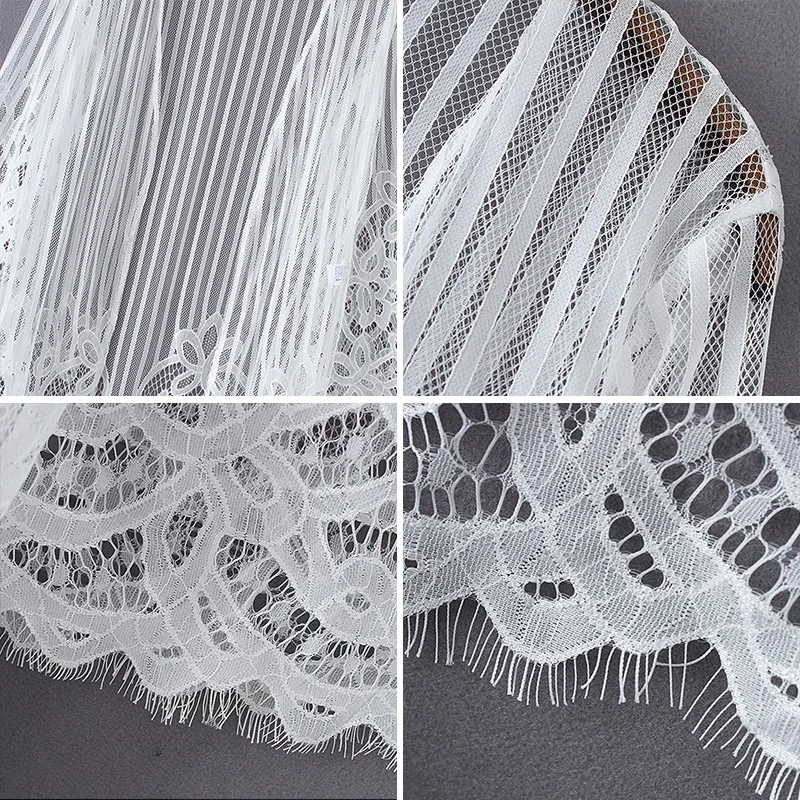 Изготовленная из мягкой прозрачной ткани, эта цельная часть отполирована вязаной тесьмой, с вырезами и отделкой ресниц.