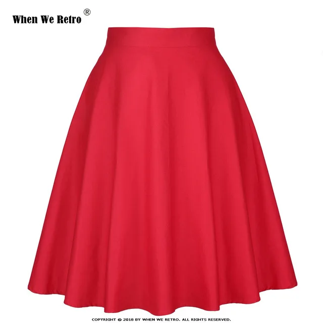Когда мы Ретро высокая талия юбки женские летние короткие черные, синие, красные, винно-красные, зеленые низ 50s 60s винтажная Юбка Saia плюс размер