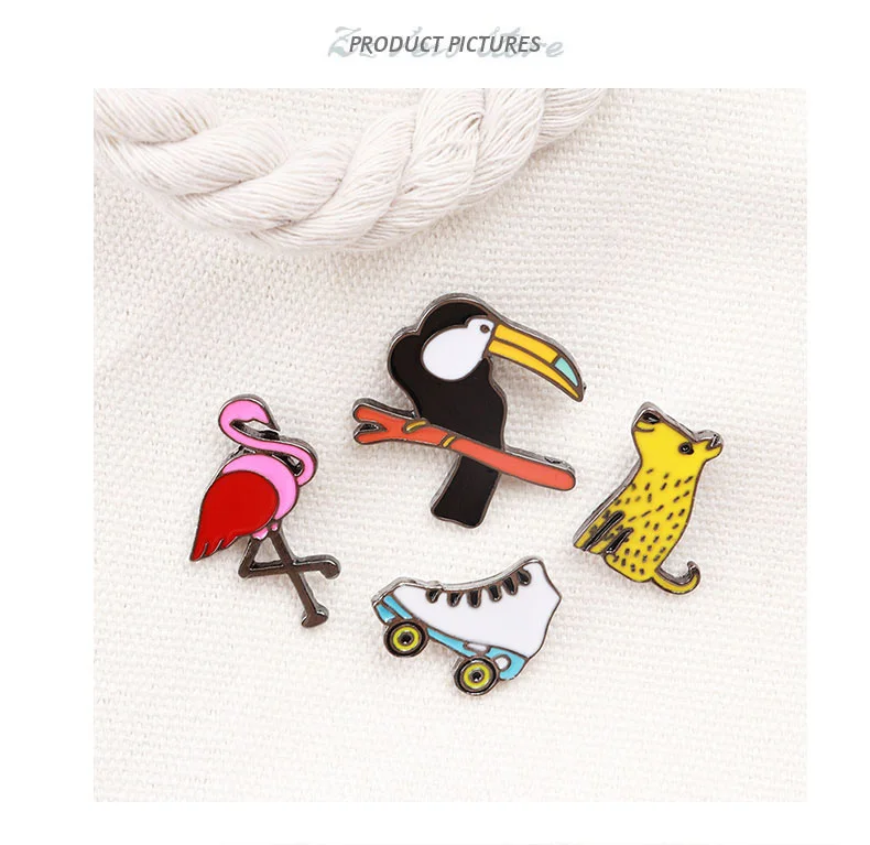 Мультфильм Леопард ворона Фламинго роликовые коньки Брошь креативные эмалированные Значки металлические ремесленные аксессуары украшение для животных
