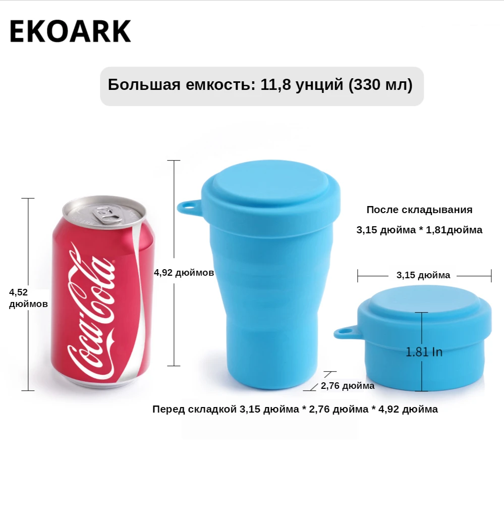 Размер чашки: (чашка с крышками) После складывания: 8,0 см (3,15 дюйма) * 4,60 см (1,81 дюйма) Перед складыванием: 8,0 см (3,15 дюйма) * 7,01 см (2,76 дюйма) * 12,50 см (4,92 дюйма) Объем чашки: 11,8 унций (330 мл) Вес: 95 г (с крышками) Безопасный и безопасный: Силиконовая чашка изготовлена из прочного силикона, сертифицированного FDA, без BPA Диапазон температур: от-40F до 480F. Используется для холодных напитков, кофе, чая, супа или других горячих напитков.