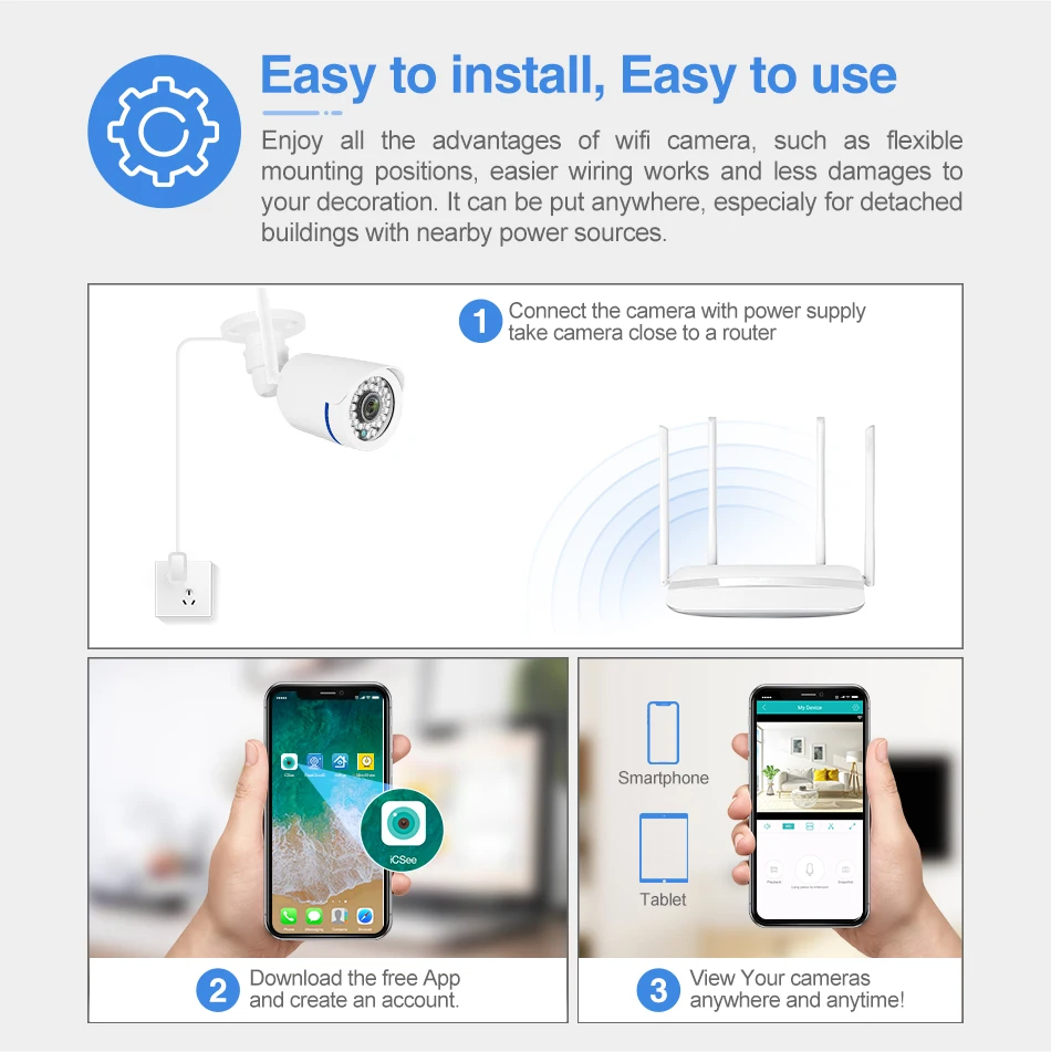 Пожалуйста, обратите внимание:1. Пожалуйста, подтвердите, что Wi-Fi сеть, которая будет подключена, является протоколом 2,4G, не может 5 ГГц.2. Пожалуйста, подтвердите, что сигнал маршрутизатора сильный, и камера не слишком далеко от маршрутизатора.3. Если подключение WiFi не удалось, попробуйте подключить устройство через режим AP или сетевой кабель напрямую.4. Чтобы обеспечить лучшее качество изображения, пожалуйста, установите камеру с правильным углом и разумным расстоянием, по любым вопросам, пожалуйста, свяжитесь с нашей службой поддержки клиентов!Варианты использования