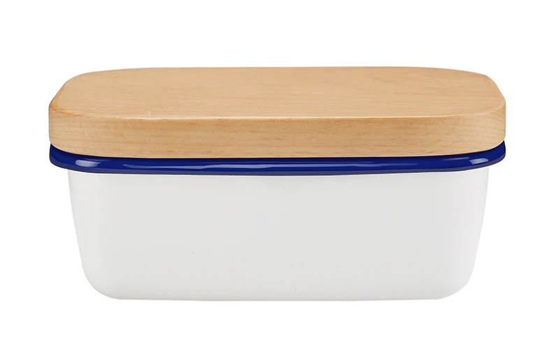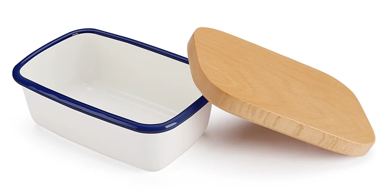 Butter Box Dishes Enamel Butter Container Plates Tray With Wooden Lid Cover Black High Quality White Storage Box High Quality