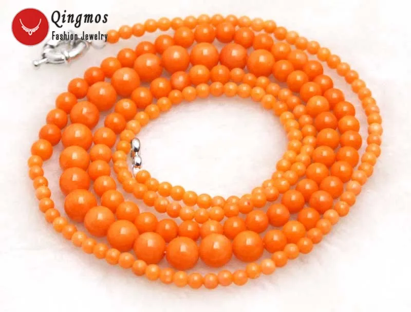 Description:Qingmos Natural Coral Long Necklace for Women with Orange 4-7mm Round Coral Sweater Necklace Jewelry 33" nec6010 Free Shipping