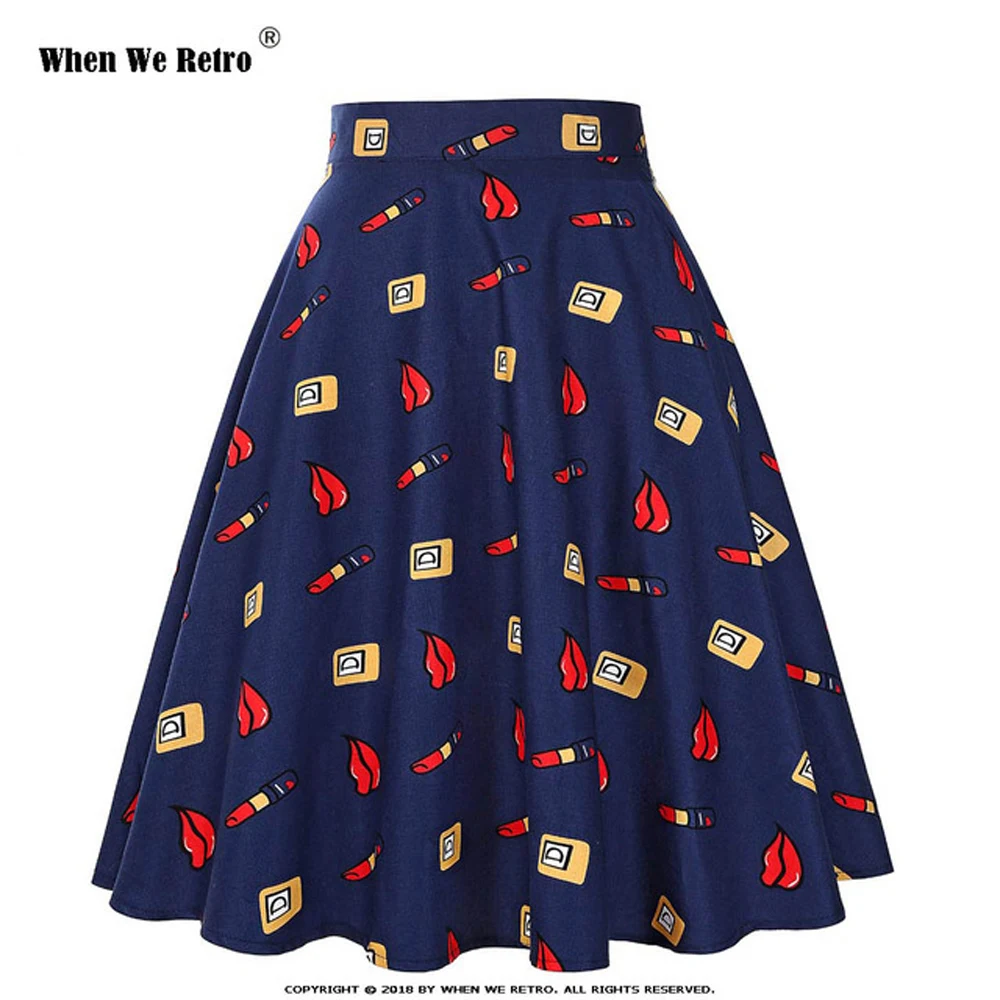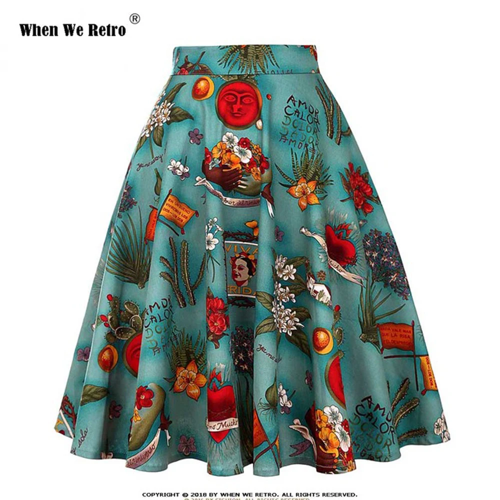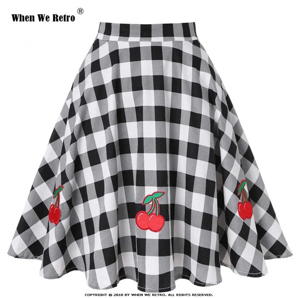 Когда мы Ретро хлопок юбка женская сексуальная миди юбка Цветочный Горошек Черный Красный Синий размера плюс с высокой талией Скейтер клетчатая Женская юбка
