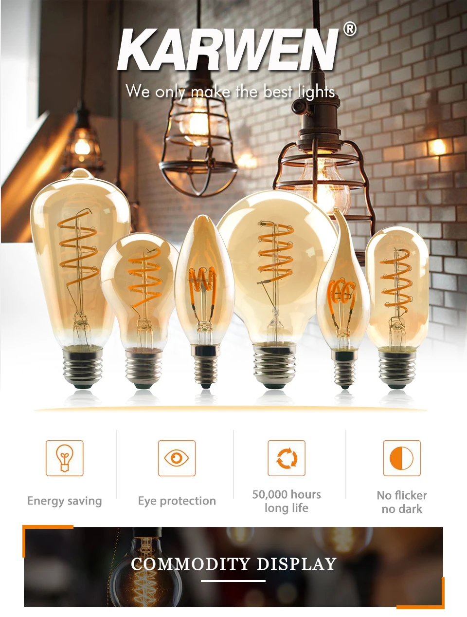Модель: C35 C35L (цоколь E14)/ G45 A60 T45 ST64 G80 G95 (цоколь E27) спиральная Светодиодная лампа накаливания