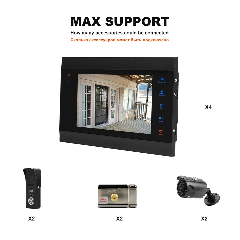 1 монитор поддерживает 2 дверных звонка и 2 камеры подключены