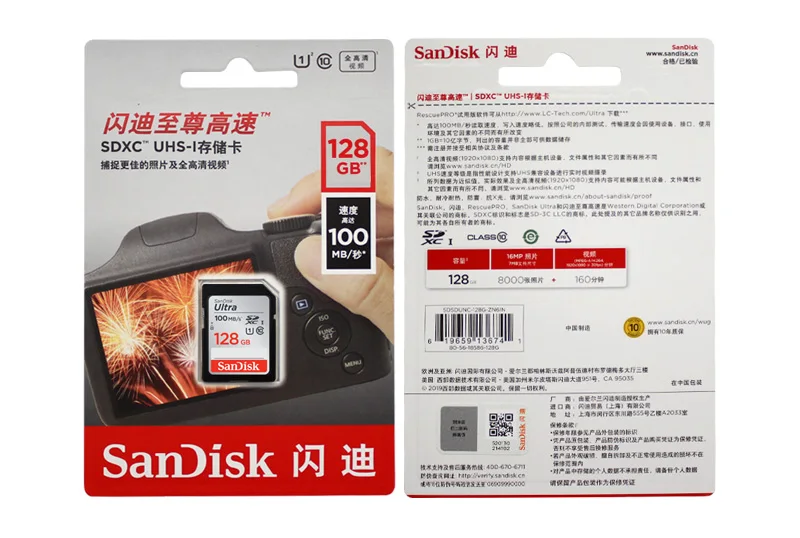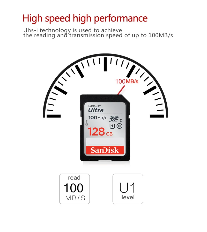 SanDisk ультра оригинальная sd-карта 16 ГБ 32 ГБ SDHC 64 Гб 128 ГБ SDXC карта памяти C10 высокоскоростная 80 МБ/с./с USH-1 sd-карта Поддержка камеры