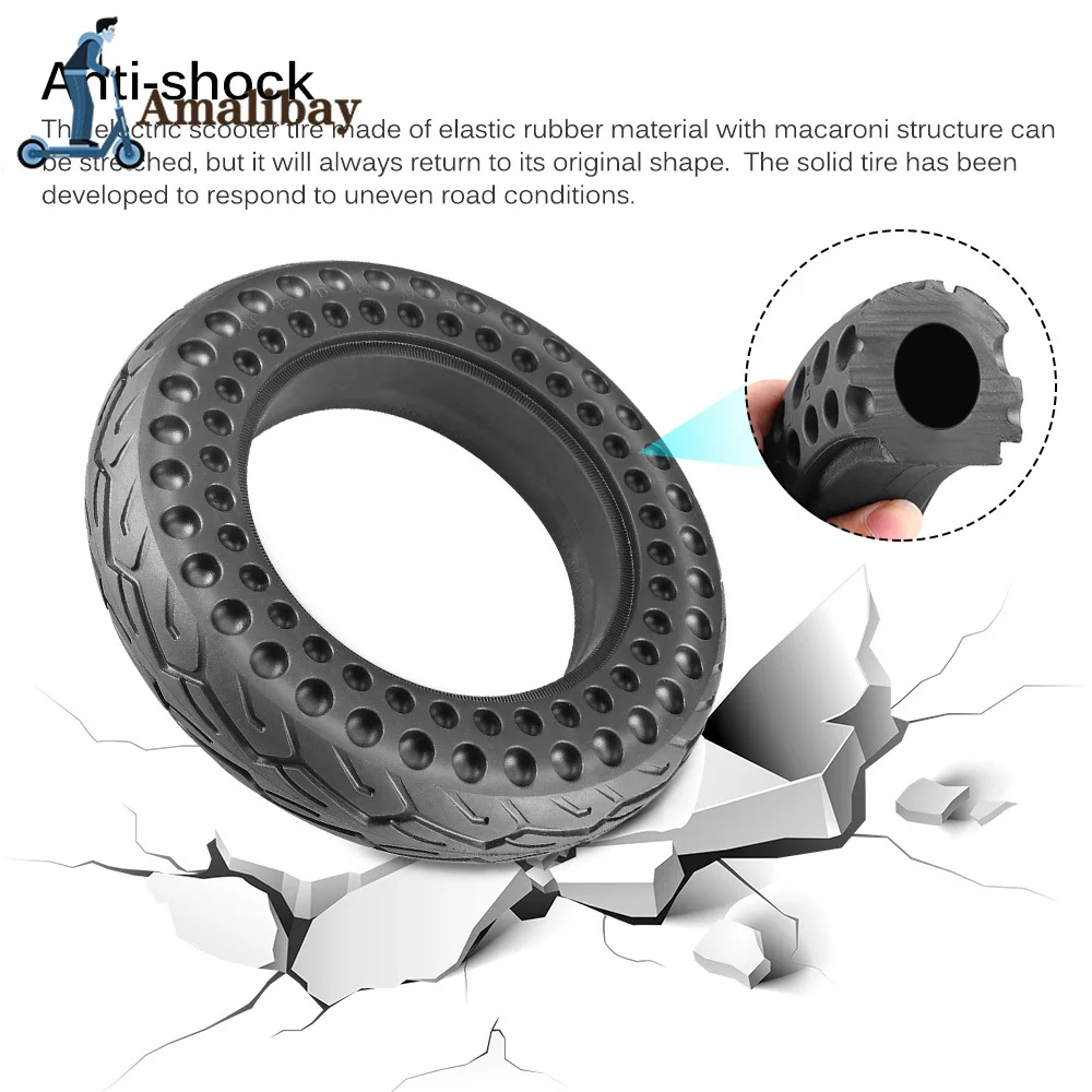 Шина для электрического скутера, изготовленная из эластичного резинового материала с структурой макарон, может растягиваться, но она всегда вернется к своей оригинальной форме. Твердые шины были разработаны для реагирования на неровные дорожные условия.