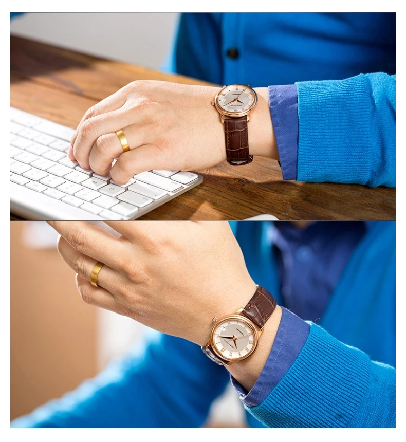 Чайка 34 мм ультра тонкий 8 мм PVD розовое золото чехол с римскими цифрами само-намотки ST18 часовой механизм Дата автоматические часы унисекс 519,367