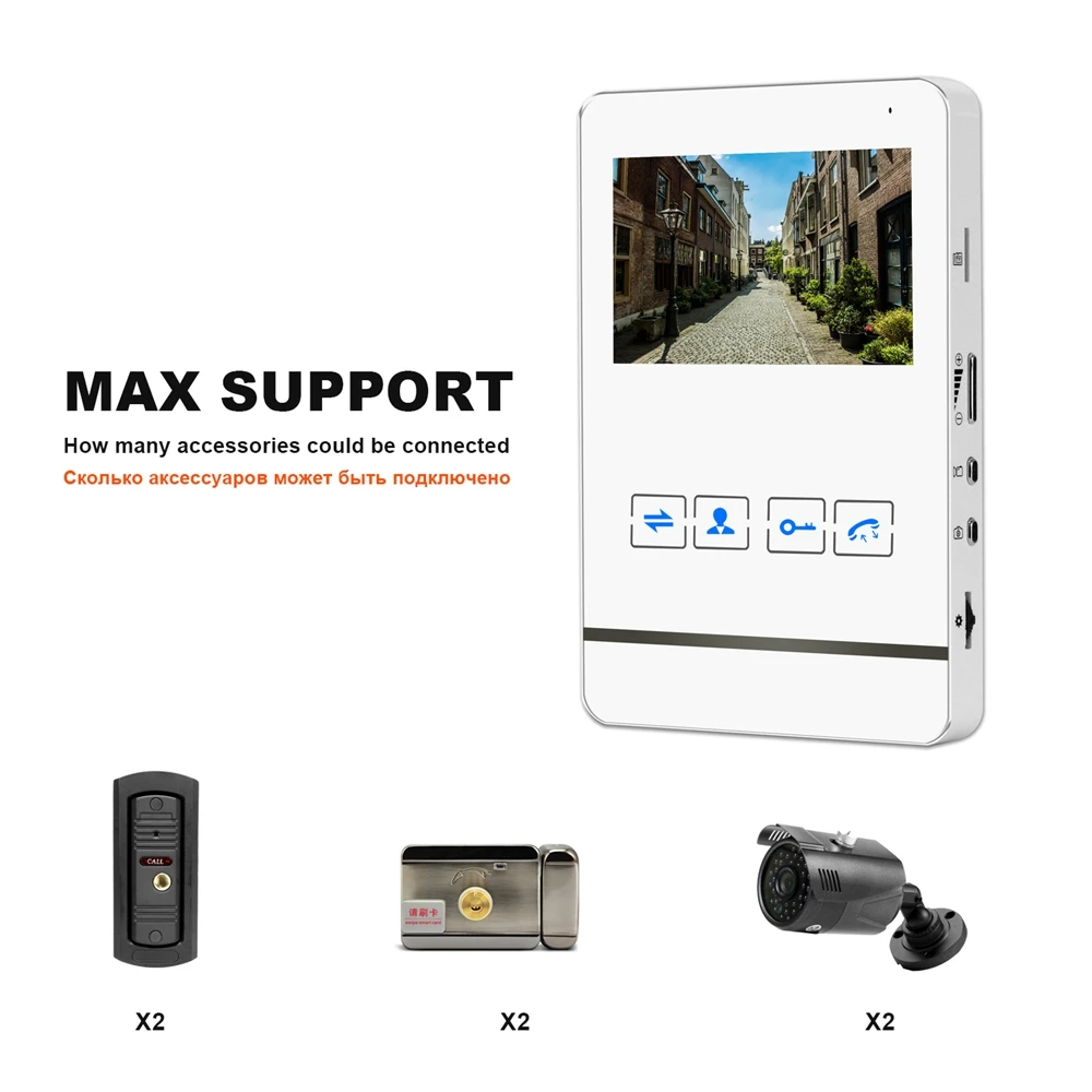 1 монитор поддерживает 2 Дверных звонка + 2 камеры