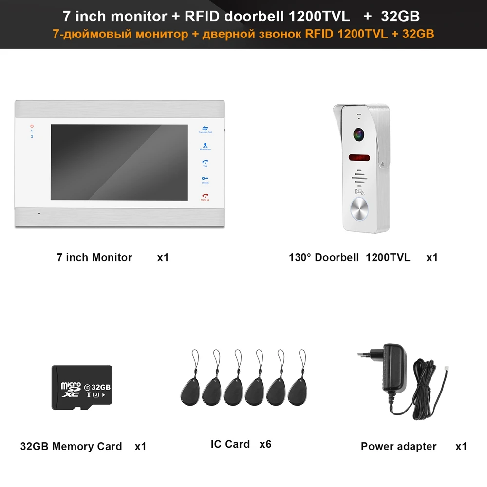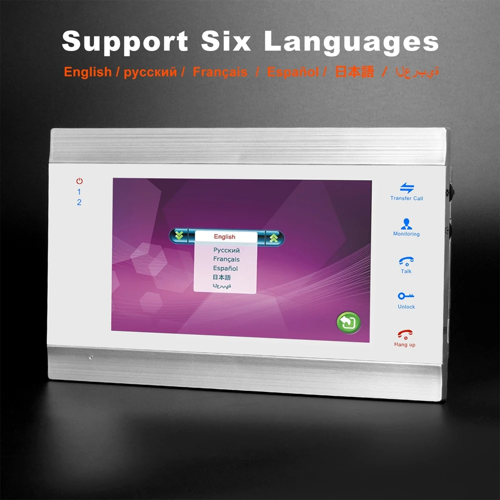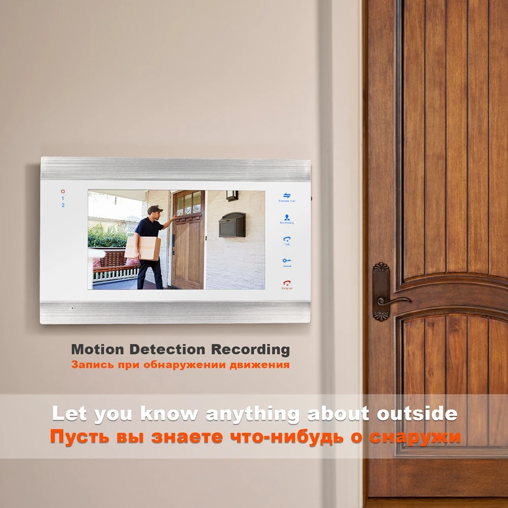 1. Обнаружение движения, запись видео на карту памяти 2. 1 монитор поддерживает 2 дверных звонка + 2 подключенные камеры 3. Поддержка камеры дверного звонка / предварительного просмотра камеры видеонаблюдения 4. Поддерживает запись изображений / видео 5. Английская версия / русская версия имеют те же функции 6. Работает со всеми видами электронных замков. 7. Поддерживает 6 языков: English / русский / Español / Le français / عربى / Jananese 8. Поддерживает двусторонний разговор 9. Поддерживает внешнюю карту памяти (до 32 ГБ). 10. отрегулируйте кольцо / громкость 11. Поддерживает 4 видеодомофона, соединенных вместе 12. Домофоны автоматически отключат экран после остановки работы на 1 минуту для экономии электроэнергии!