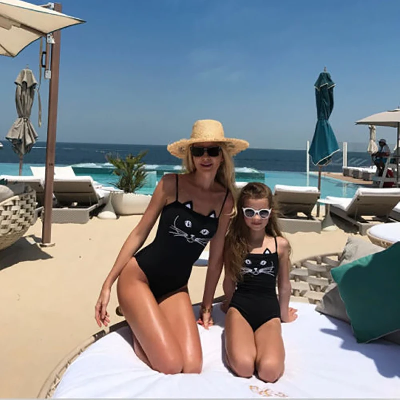 Летние одинаковые комплекты для семьи; комплект из 2 предметов; боди для дочери; повседневная одежда без рукавов с милым принтом кота; пляжная одежда для игр
