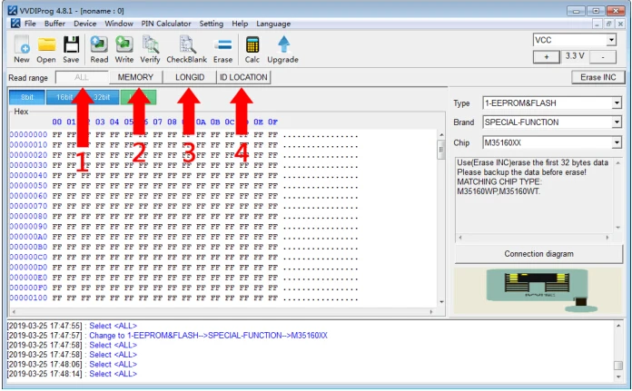 1. Данные резервного копирования:Чтение и сохранение приборной панели оригинального IC из 3 разделов (память + LONGID