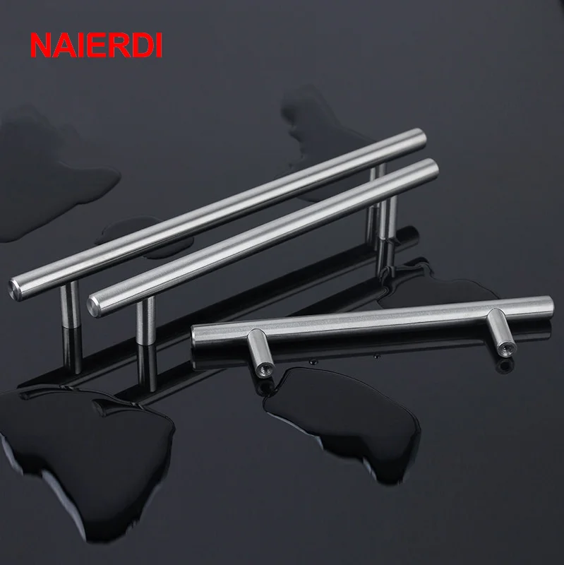 Ручки из нержавеющей стали NAIERDI, 4 дюйма ~ 24 дюйма, диаметр 10 мм, прямые Т-образные ручки для дверей кухонных шкафов, мебельная фурнитура