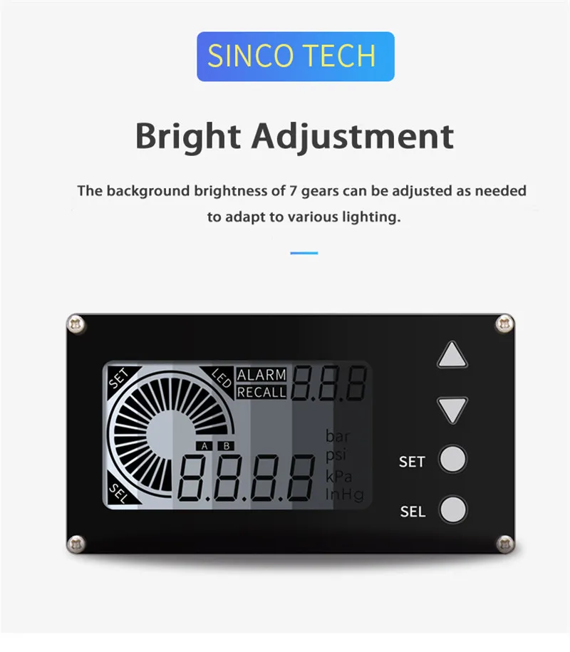 6. Фоновая яркость 7 передач может быть скорректирована по мере необходимости, чтобы адаптироваться к различным освещениям.