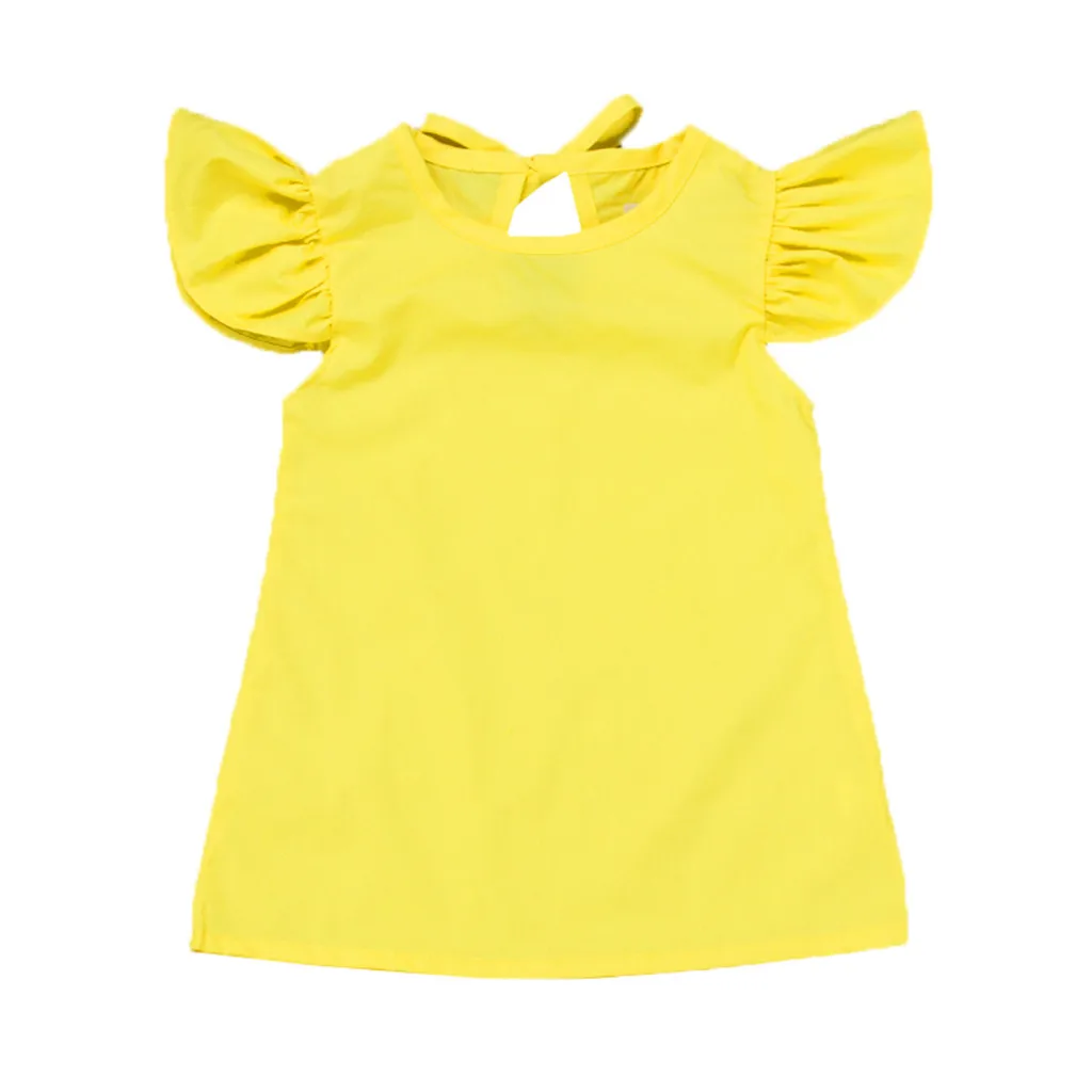 Летнее однотонное платье с бантом и рукавами-крылышками для маленьких девочек; платьяОбратите внимание: если ваш ребенок пухленький, мы рекомендуем выбрать больший размер, спасибо.