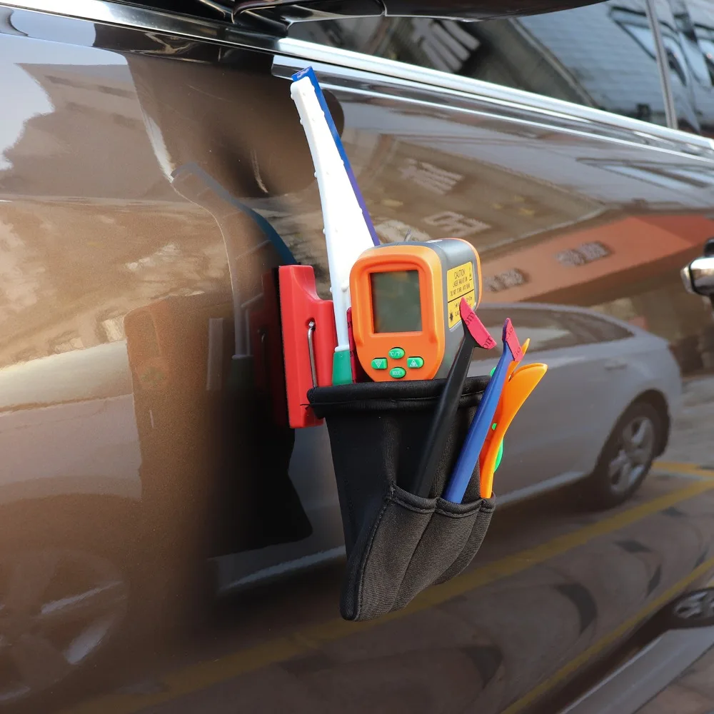 1. Отличный дизайн --- сумка для инструментов с супер сильными магнитами, может быть прочно прикреплена к корпусу автомобиля при резке инструментов, он не упадет, пока вы не снимите его.