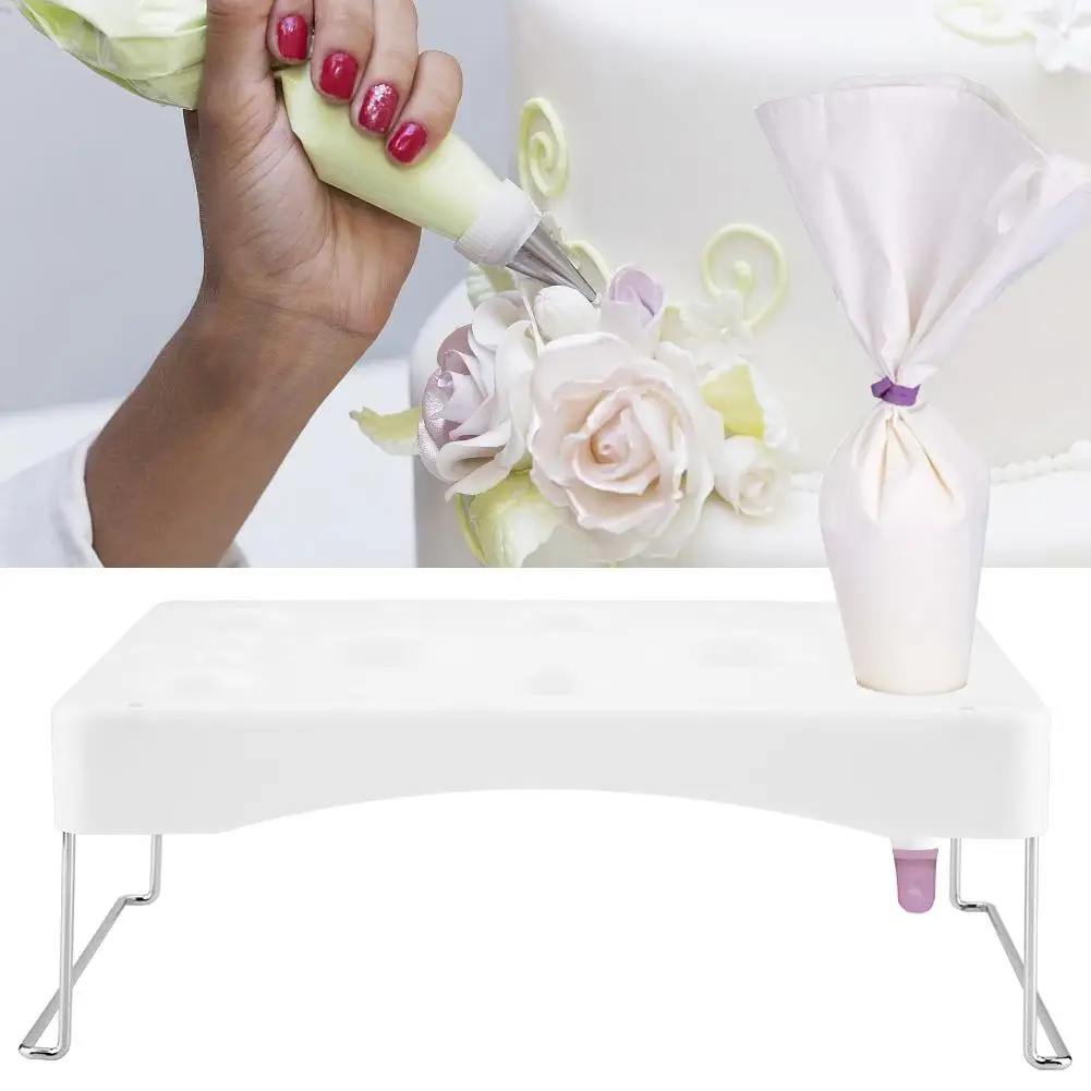 Изготовлен из высококачественного пластика, прочный и прочный в использовании, легко моется. Ножки изготовлены из нержавеющей стали, не ржавеют, устойчивы к коррозии, не скользят. Может предотвратить попадание наконечника сопла в грязь или избежать его сдавливания, когда он помещается в заполненный стол. Она может держать насадка для декорирования торта, чтобы сделать вашу работу для выпечки более удобной. Хороший аксессуар для любителей выпечки.1 x