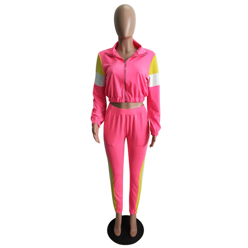 Женский модный Повседневный Спортивный костюм с длинными рукавами на молнии, 2 шт.