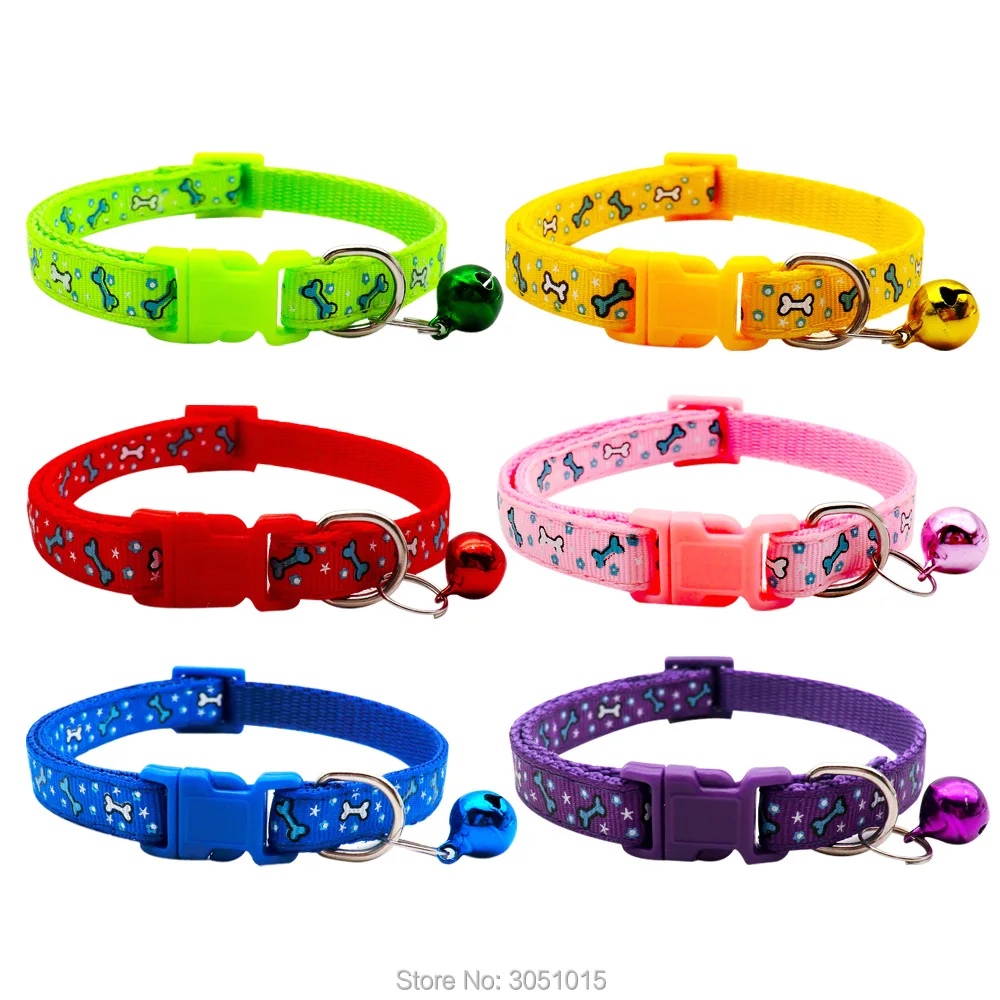Оптовая продажа 100 X Регулируемый ошейник для кошек с колокольчиком на шею ошейник для кошек и собак ошейник для кошек с принтом костей базовый воротник