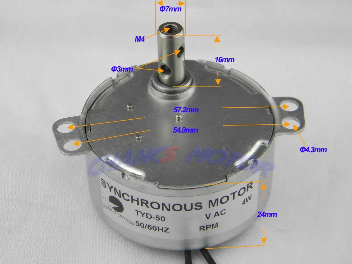 Синхронный двигатель работает от 100 до 130 В переменного тока.