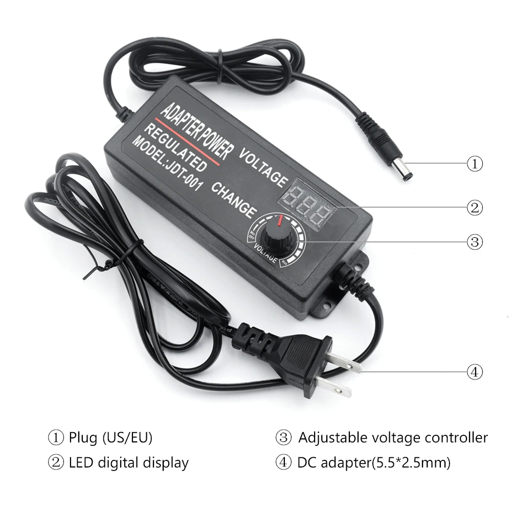 Регулируемый регулятор напряжения, 3-12 В 5А или 3-24 В 2А или 4-24 В 1.5A или 9-24 В 3А опционально, просто Отрегулируйте необходимое напряжение через ручку переключателя.