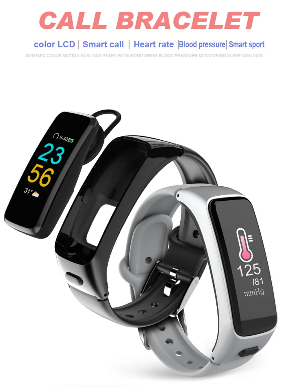 0.96 inch color screen display Bracelet CPU : NRF52832 Earphone CPU : WT200S G-senor : SC7A20 PPG Chip : HRS3300 System : Android4.4 and above, IOS 8.0 and above Battery : 65mAh Bluetooth 4.2 and 4.0 Speaker : 1207 Mic : 4015 Vibrate : 0820 Band Strap Material : TPU or Matel(Steel) Function : time display, heart rate monitor, blood oxygen, bolld oxygen monitor, bluetooth music, pedometer, step, calorie, distance, sleep monitor,