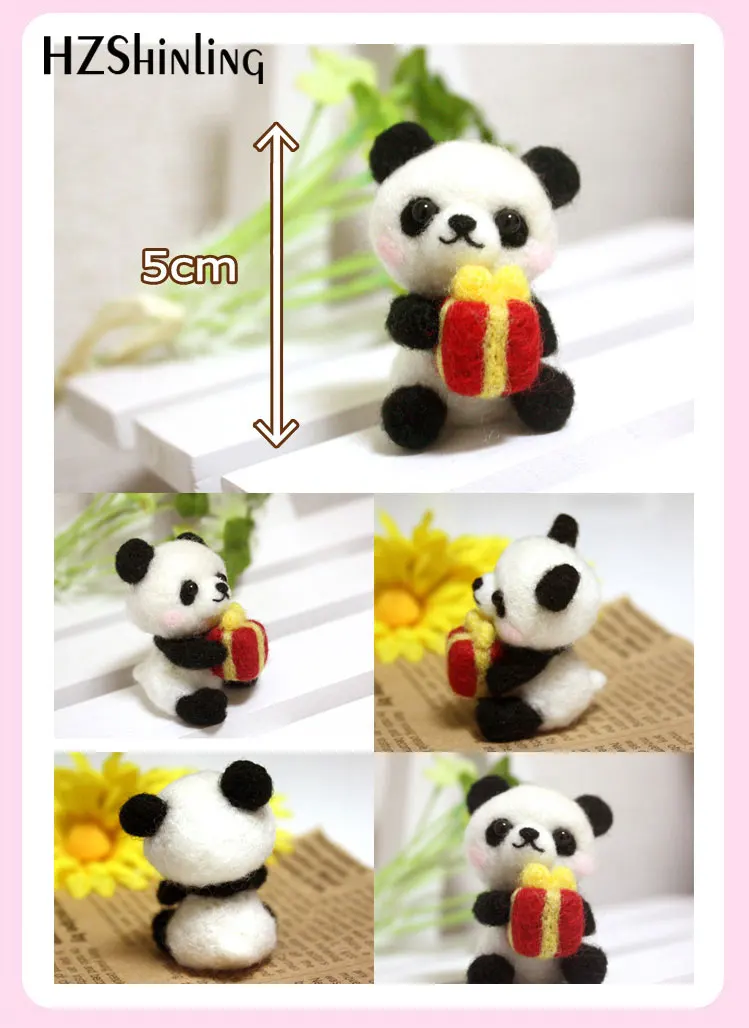 Модная Милая панда, подарок, игрушка ручной работы, кукла для нее, шерсть, войлок, кошечка, не готовая, сделай сам, шерстяное валяние, упаковка