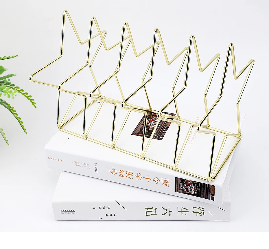 Описание товара 1. Материал: Изготовлен из прочного металла с гальваническим покрытием красивого золотого цвета, декоративный и антикоррозийный, блестящий и элегантный. 2. Экономия места: решить проблемы с вашим столом беспорядок, держать ваш стол в порядке. 3. отлично подходит для дома, офиса, комнат ожидания и комнат отдыха и т. д. подходит для многих случаев, как это удобно для дома, офиса, школы, комнаты ожидания, чайной комнаты, гостиной и комнаты отдыха и т. Д. 4. Простая и красивая треугольная форма книжного шкафа: Может использоваться для хранения журналов, газет, документов, книг блокнота, почты и других предметов.